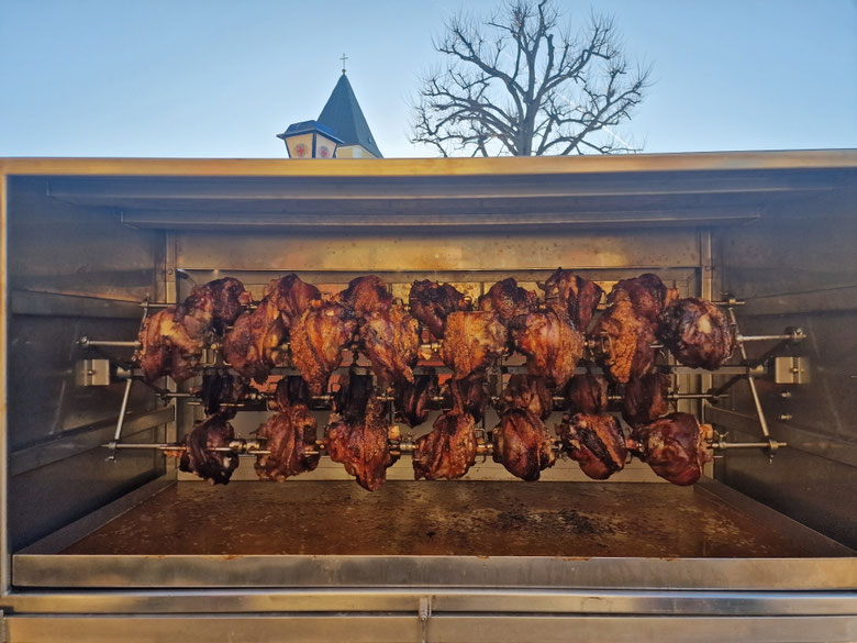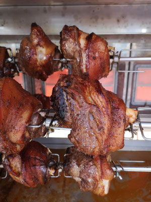 Unsere herzhaft knusprigen Schweinshaxen aus unserem eigenen Spießgrill