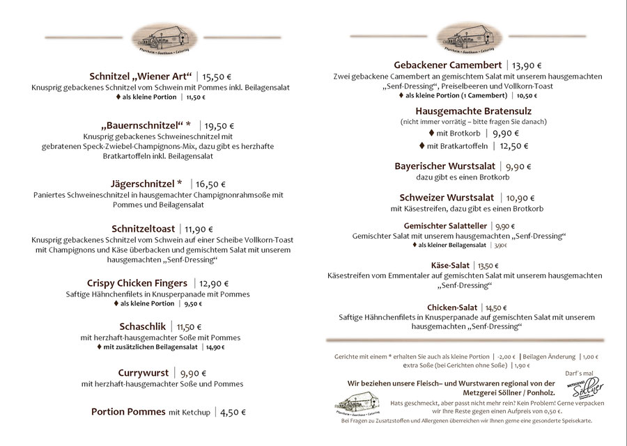 SPEISEKARTE Sonntag Mittag